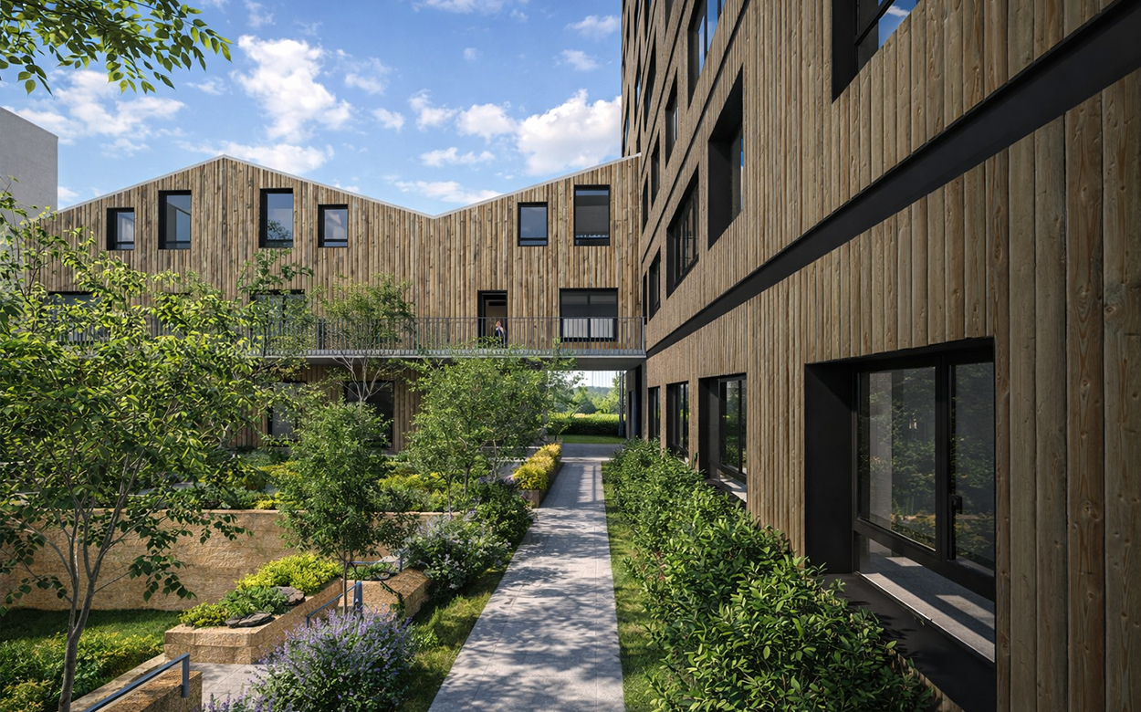 Les maisons individuelles se veulent « atypiques » du fait de leur intégration dans un programme collectif, s’éloignant ainsi de la typologie de maison individuelle classique. Elles seront quand même caractérisées par des toitures en pente et par des accès individuels et indépendants depuis le jardin collectif sur dalle au RDC haut.