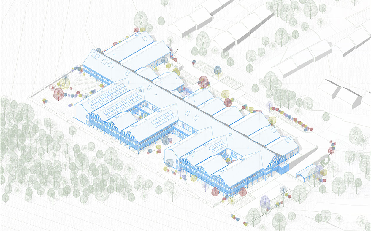Le site de construction de la nouvelle maison du grand âge de l’Yze offre une proximité au centre bourg et un rapport unique au paysage. Les futurs résidents disposeront de vues et d’un rapport à la nature unique.