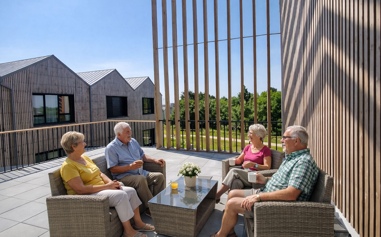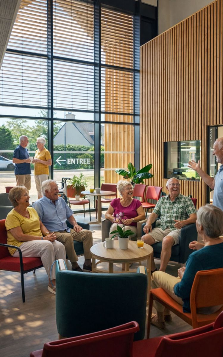 L’entrée et le hall sont pensés comme une place de village, ouverts sur l’extérieur, comme un appel pour maintenir le lien social au sein du quartier.